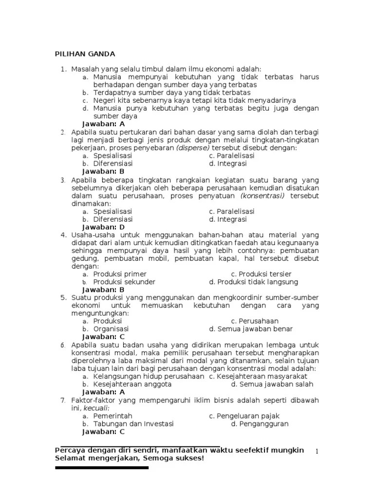 Soal pilihan ganda materi pendapatan nasional dan jawaban.